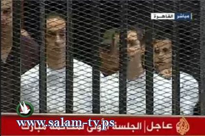 كما ظهر نجلا الرئيس السابق، علاء وجمال، اللذان يحاكمان معه في نفس القضية، داخل قفص الاتهام في الملابس البيضاء التي يرتديها المحبوسون احتياطيا في السجون.