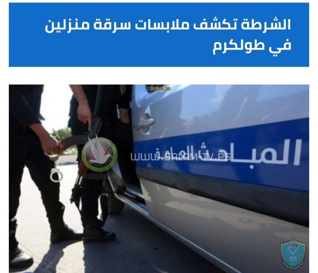 تلفزيون السلام - فلسطين : كشفت الشرطة ملابسات سرقة منزلين بقيمة 35 ألف دينار وقبضت على مشتبه به في طولكرم.