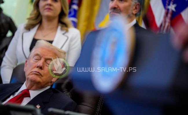 تلفزيون السلام - فلسطين : أثارت صور متداولة على مواقع التواصل الاجتماعي للرئيس الأمريكي دونالد ترامب نائما خلال مؤتمر صحفي في المكتب البيضاوي موجة من الجدل والانتقادات من معارضيه.