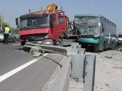 تلفزيون السلام - فلسطين : أصيب 23 تلميذا "إسرائيليا" تتراوح أعمارهم ما بين 12-15 عاما بجراح وصفت بالطفيفة جراء تصادم حافلتين وقع اليوم "الثلاثاء" على مدخل احد الكيبوتسات جنوب البلاد.