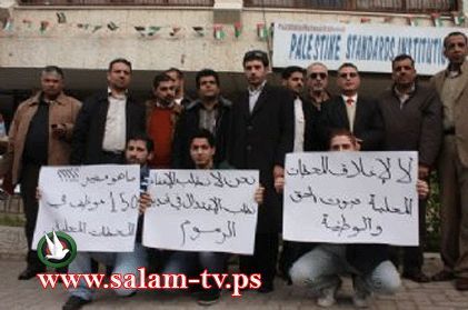 ورفع المعتصمون شعارات تطالب الرئيس محمود عباس التدخل شخصيا لوقف هذه الحمله التى تستهدف الاعلام المحلى الفلسطيني كما طالب المعتصمون بالغاء الرسوم الباهظه ودفع رسوم تتناسب ودخل هذه المحطات .